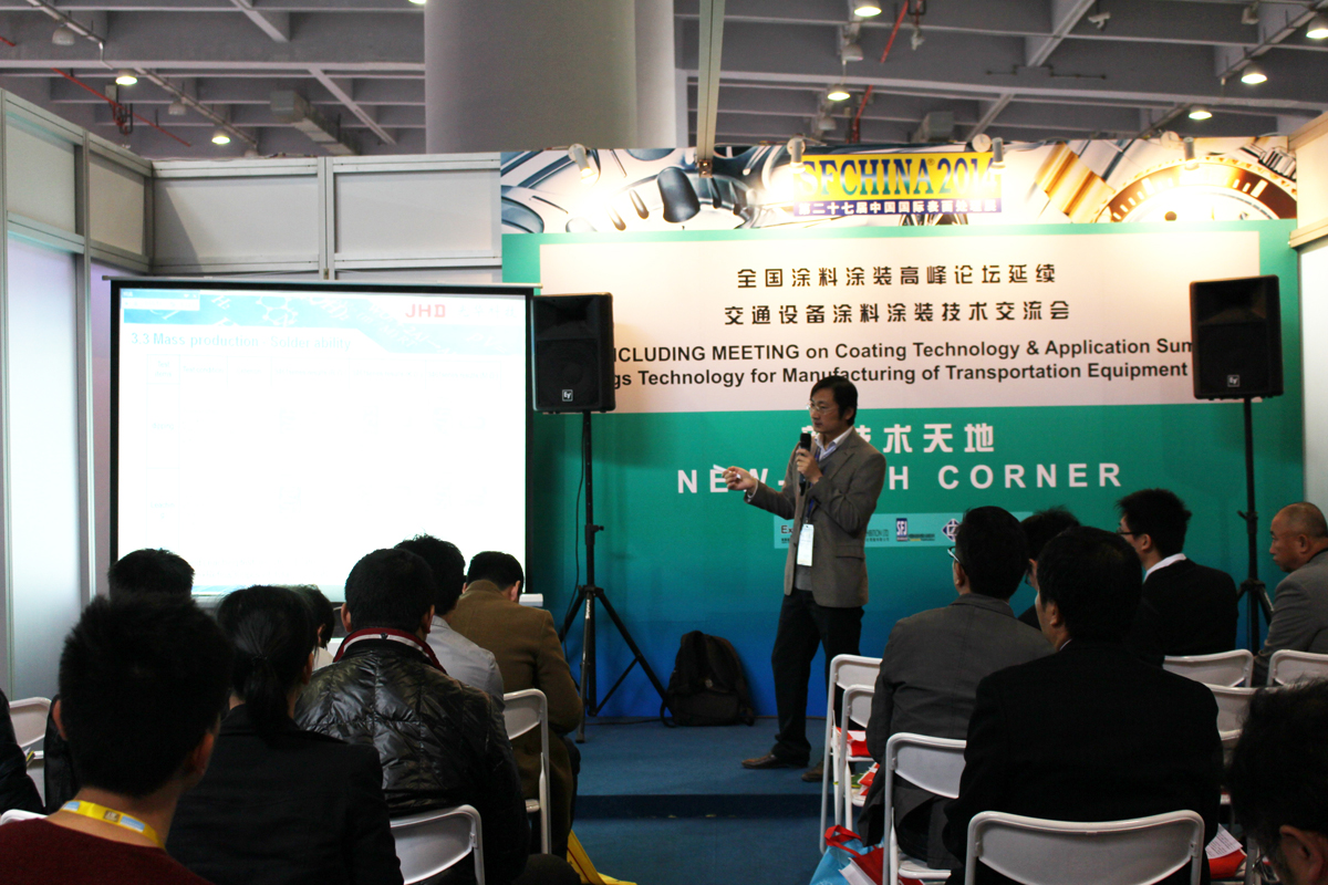 在展會12月4日舉行的新技術(shù)天地中,公司任秀斌博士為現(xiàn)場觀眾帶來了《純錫電鍍液在被動元器件生產(chǎn)中的應(yīng)用》報告,并與觀眾共同探討了相關(guān)技術(shù)問題,得到了熱烈的反饋。