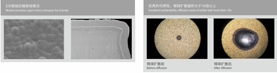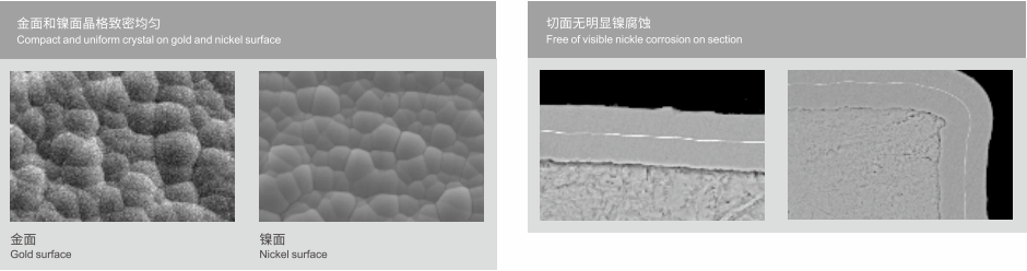 ENIG is one of final surface treatment processes for PCB for depositing a layer of nickel and gold on copper surface; ENIG belongs to medium phosphorus and medium~high phosphorus series, and has excellent solderability, corrosion and wear resistance, and is an ideal process designed in particular for final surface of PCB.