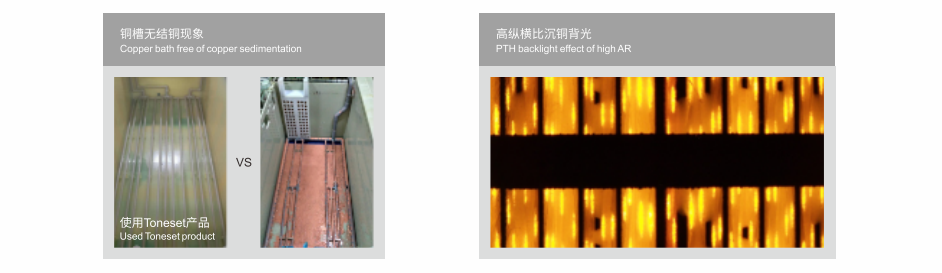 Applicable to production demands for the boards with high aspect ratio and HDI, PTH bath load has wide applicable scope;